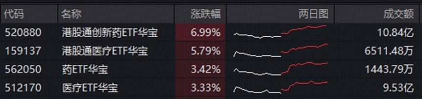 港股医药弹力出众,100%创新药研发标的——港股通创新药ETF华宝(520880)、港股医疗核心资产——港股通医疗ETF华宝(159137)收涨6.99%、5.79%,时隔仅2个交易日,双双再创历史最大单日涨幅!