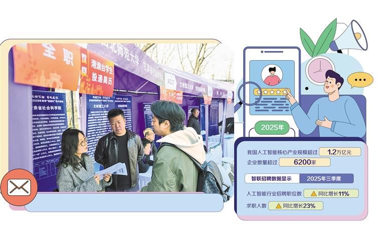 “从我们观察到的情况来看,AI相关岗位占比同比明显增长。很多传统企业也在积极招揽人工智能人才,人工智能岗位的渗透率越来越高。科创产业正成为吸纳就业的主力。”北京市职业介绍服务中心主任杜阳表示,从招聘需求到人才培养,北京就业市场正加速向新质生产力领域转型。人工智能、芯片、新能源等技术岗位成为就业增长点,也是今年春招最显著的特点之一。
